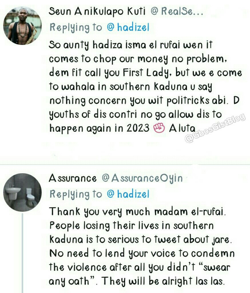 The Twitter broke into pieces on Friday as the Wife of Kaduna State Governor replies Nigerians who asked her to advice her husband about the recent massacre and genocide going on in the state.