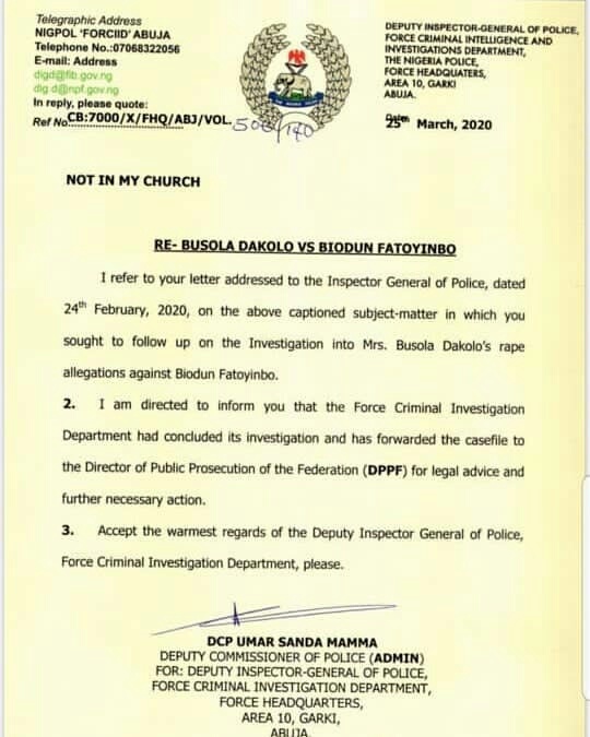 As the popular singer’s wife, Busola Dakolo marks one year of her rape case with the COZA’s pastor, Biodun Fatoyinbo, persecution steps have further been taken as Nigeria police forwards concluded investigation to Federal Ministry of Justice.