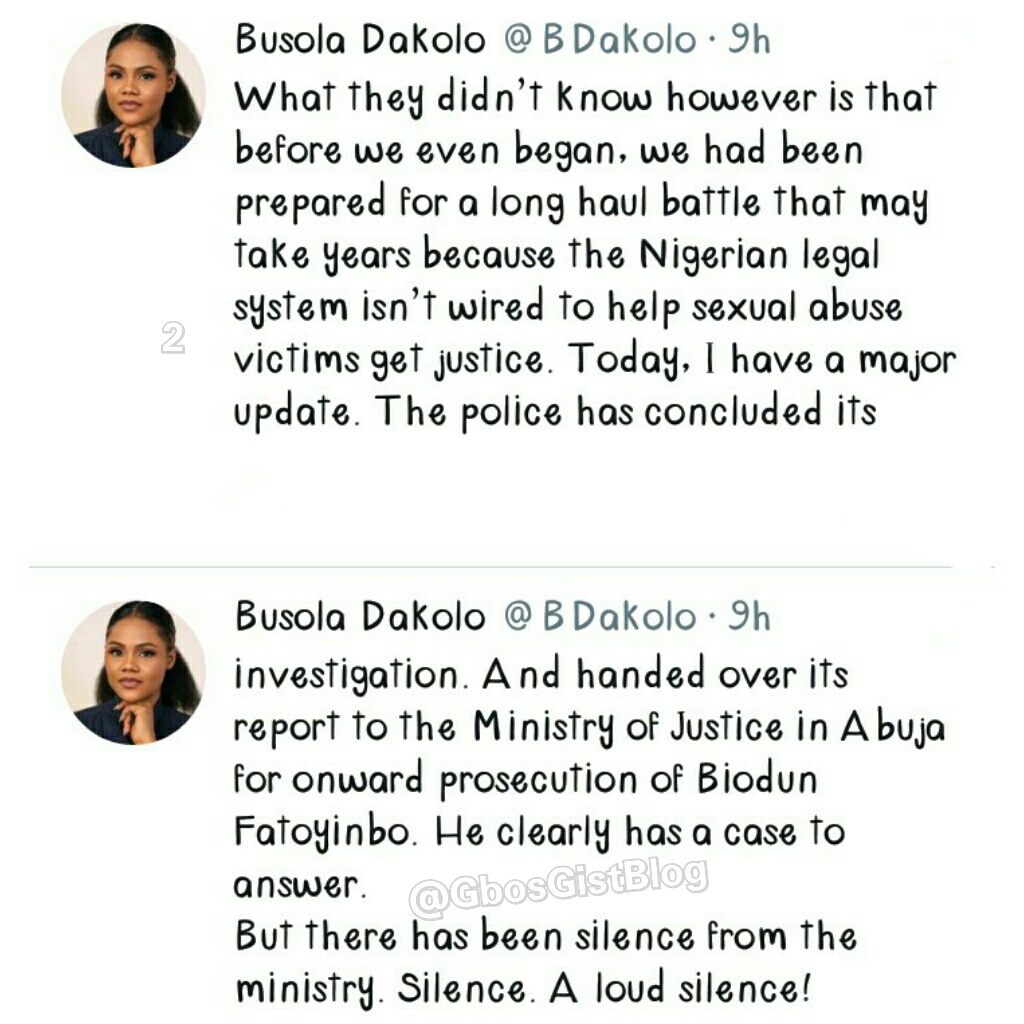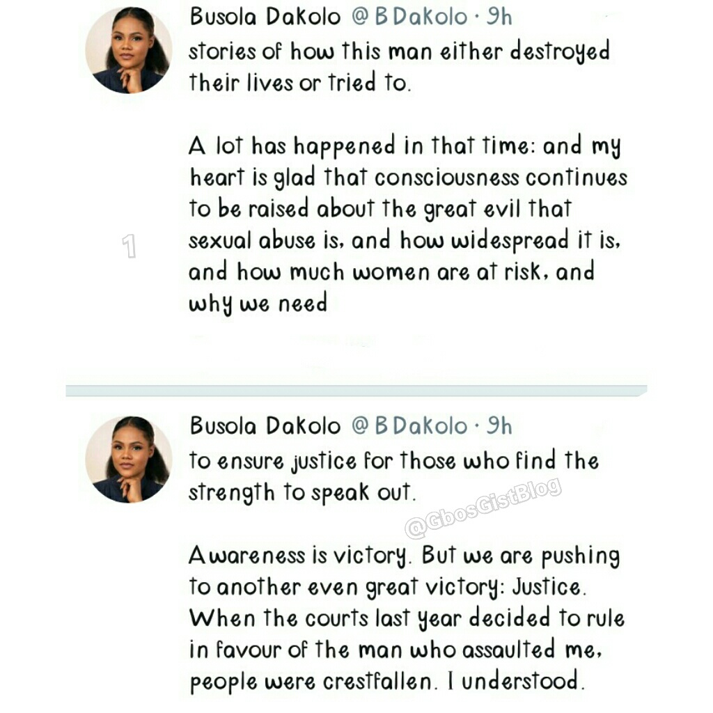 While appreciating Nigerians and organizations who have stood their ground to ensuring justice is gotten at last, Busola wrote