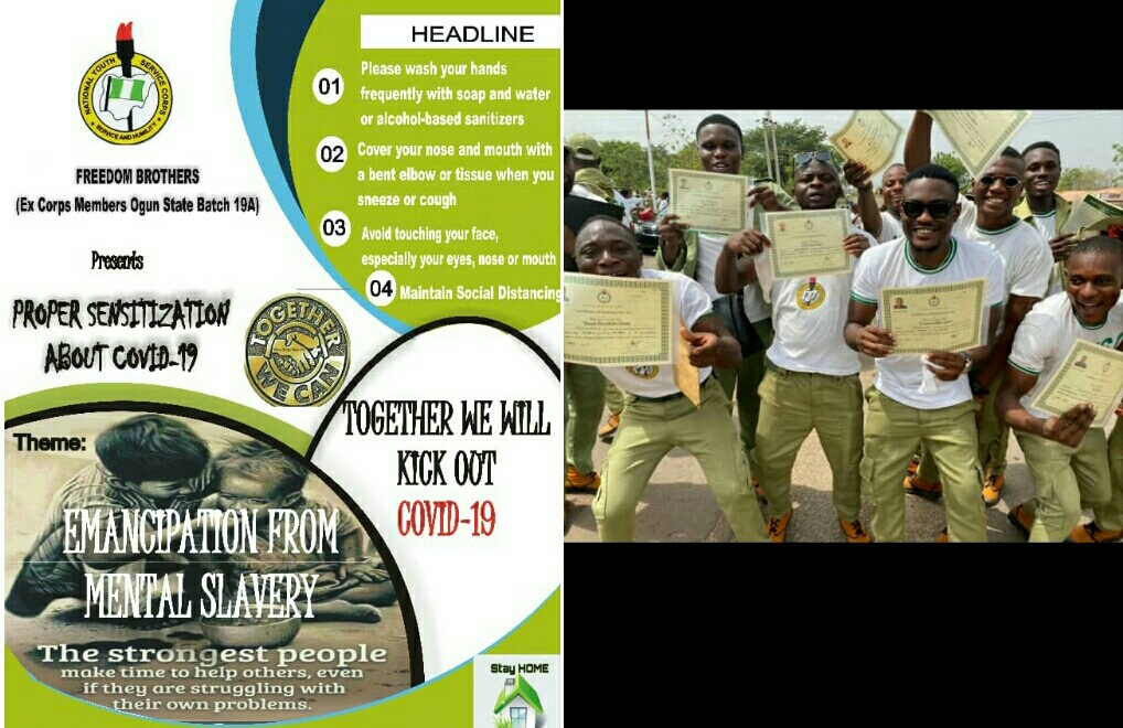 The National Youth Service Corps(NYSC) ex-corps members of Batch-A 2019 in Ogun State made history on Thursday by donating already saved allowee to purchasing palliatives while dispersing themselves across states within the country despite the inter-state border closure with the purpose of helping and sensitizing the poorest of the poor amidst the Lockdown.