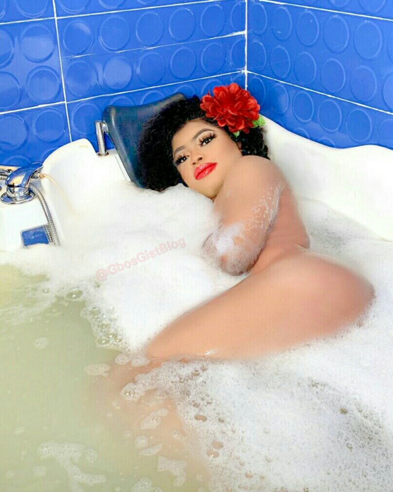 The post has generated a lot of controversies from her fans and the public at large as the photo reveals the undressed body of Bobrisky in a bathtub emerging some parts of her body including her bottom while the rest are immersed deeply into the water contained in the bathtub as she lays slantingly.