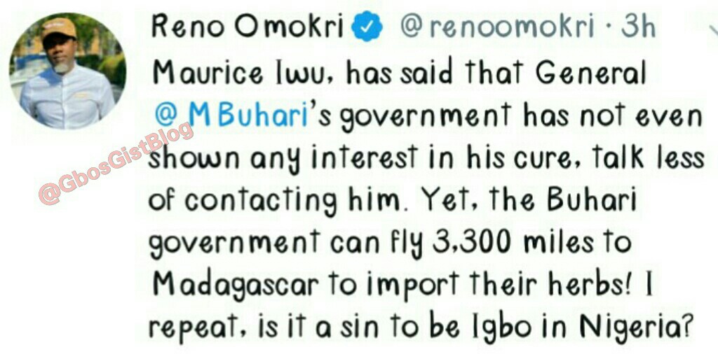 Professor “Maurice Iwu has said that General @MBuhari’s government has not even shown any interest in the cure, talk less of contacting him, yet the Buhari government can fly 3,300 miles to Madagasca to import their herbs”