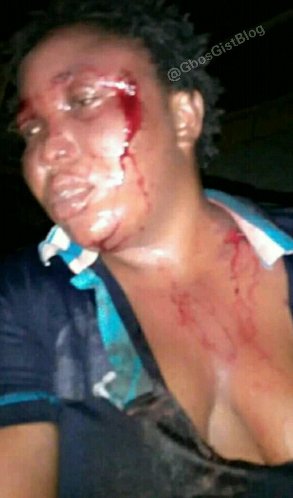 In the Photos obtained by GGB reporter, the woman whose name is yet to be ascertained is seen bleeding from her heavily swollen side eyes.