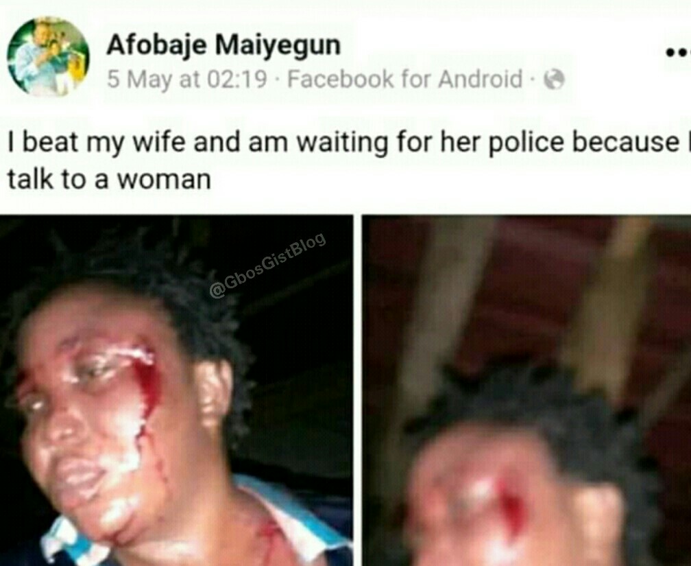 A man identified as Afobaje Maiyegun, after beating his wife to bleeding from the eyes and some parts of the body, took to his facebook account on of May, bragging with photos of bleeding wife whom he had beaten up to pulp.