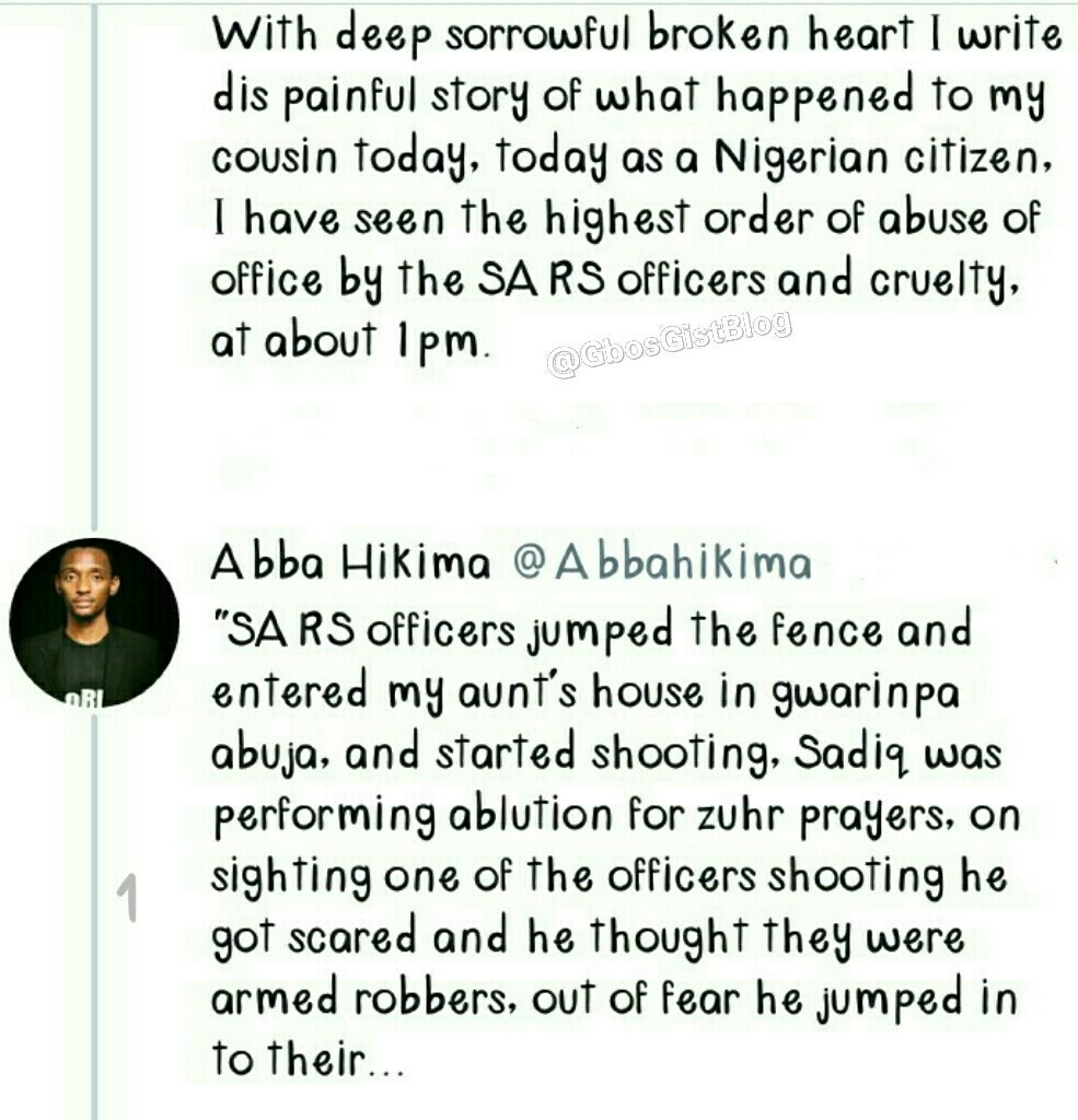 The death of Sadiq is indeed a painful one but details behind his death was on Tuesday revealed by an eyewitness who duobled as his cousin through his tweeter handle, narrating the whole incidents as they sequentially unveiled.