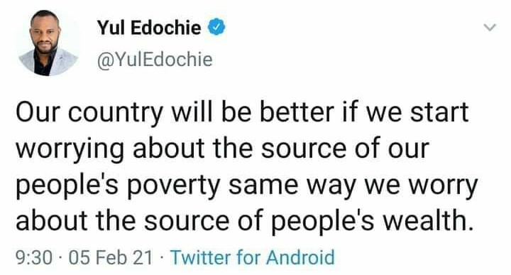 “Our country will be better if we start worrying about the source of our people’s poverty same way we worry about the source of people’s wealth”